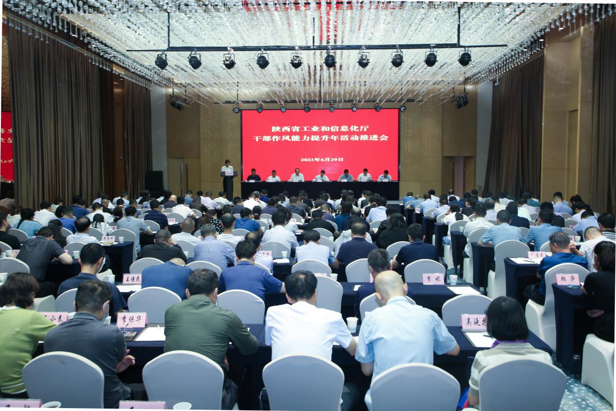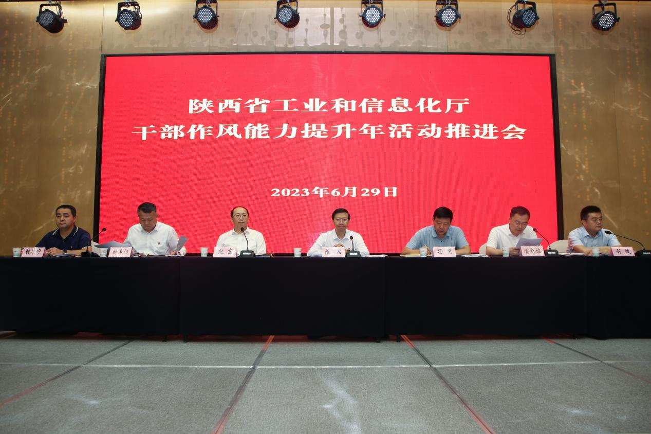6月29日,陕西省工业和信息化厅召开干部作风能力提升年活动推进会。会议深入学习习近平总书记在听取陕西省委和省政府工作汇报时的重要讲话精神,认真贯彻省委关于干部作风能力提升年活动新要求,总结干部作风能力提升年活动开展情况,分析当前形势,安排部署下一阶段的重点工作。陕西省工业和信息化厅党组书记、厅长陈忠出席会议并讲话。党组成员、副厅长、一级巡视员赵东主持,厅机关全体干部参加会议。
