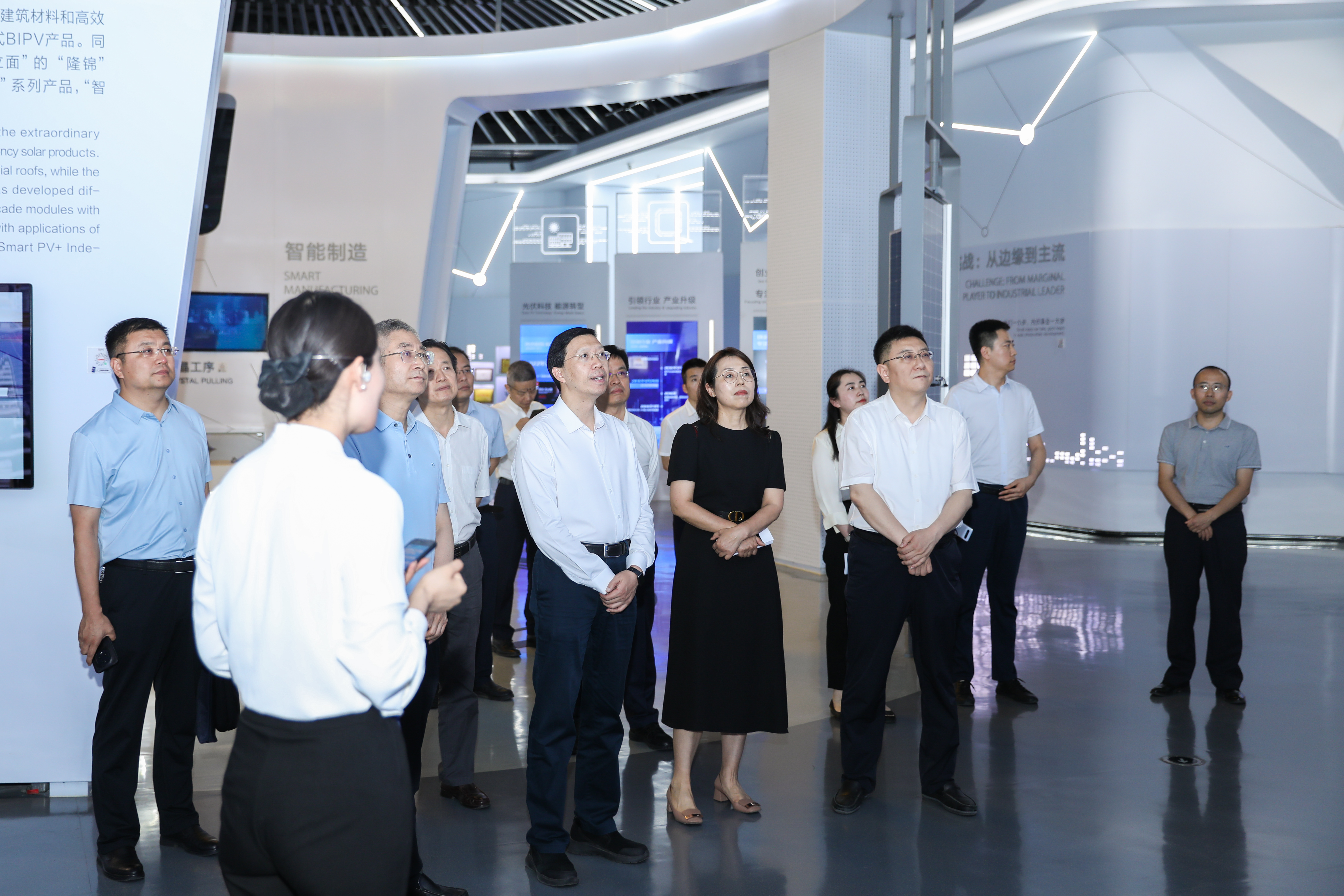 在隆基,陈忠参观了隆基绿能智慧能源展厅,听取了隆基在企业发展、科技研发、成果应用等方面情况介绍后,陈忠指出,隆基是陕西太阳能光伏产业链“链主”企业,更是带动陕西光伏产业发展水平的关键核心企业,对整个产业链上下游企业的吸引力是巨大的,希望隆基能继续抢抓机遇,乘势而上,依托产业优势,延伸产业链条,持续释放产能,全力稳产增产。同时,加大企业自主创新和产品研发力度,不断提高企业竞争力、创新力、品牌力,全面提升产业竞争优势,持续做强做大产业规模,为陕西光伏产业发展做出更大贡献。