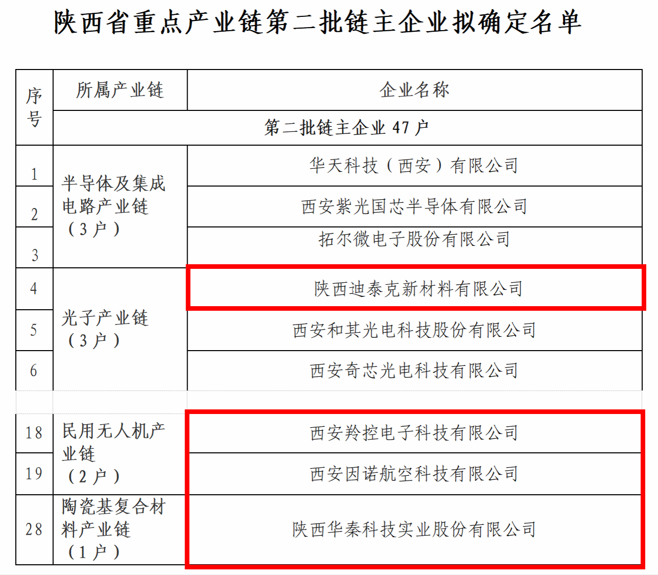 “链主”企业是指在整个产业链中占据优势地位,位于技术中枢和市场中枢的企业,对产业链大部分企业的资源配置和应用具有较强的影响力,肩负着提升产业链发展水平和绩效重任。本次有47家企业认定为陕西省重点产业链“链主”企业,涉及半导体及集成电路产业链、光子产业链等19条重点产业链。