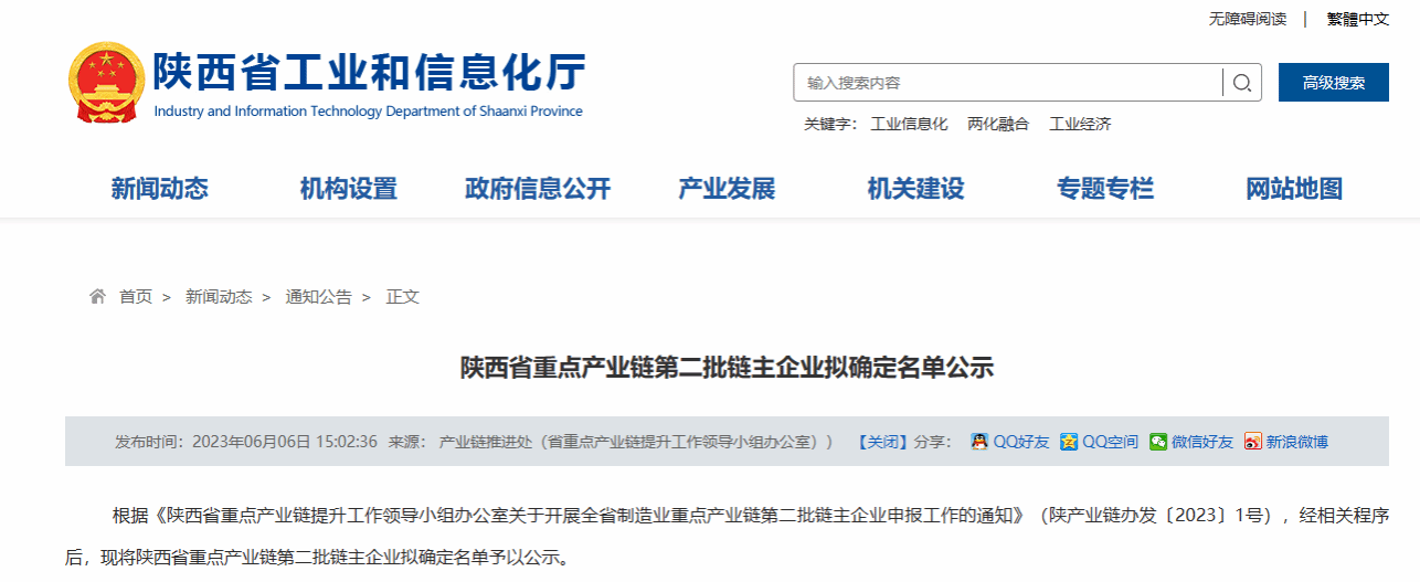 2023年6月6日,陕西省工业和信息化厅公布了“陕西省重点产业链第二批链主企业”拟确定名单。经科技园组织企业申报、省重点产业链责任单位(工作专班)审核推荐、省重点产业链提升工作领导小组办公室复核等环节,我校4家科技成果转化企业入选陕西省重点产业链第二批“链主”企业。