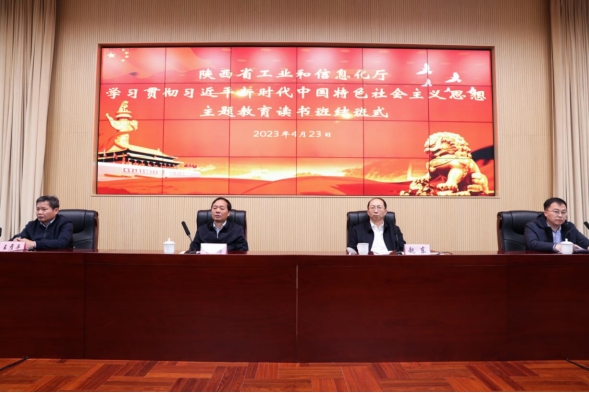 4月19日至4月23日,陕西省工业和信息化厅举办学习贯彻习近平新时代中国特色社会主义思想主题教育读书班,组织全系统党员干部和职工进行集中学习。4月23日下午,召开厅系统学习读书班交流研讨会,受厅党组书记、厅长陈忠委托,厅党组成员、副厅长、一级巡视员赵东在交流研讨后进行总结讲话,厅党组成员、副厅长黄新波主持,厅党组成员杨悦、刘卫阳、刘波、张康宁出席,厅领导,总工程师、总经济师、大数据总工程师,驻厅纪检监察组相关同志、厅机关处级以上党员干部、厅属单位和派出机构主要负责人约210人参加会议,省委主题教育第七巡回指导组组长雷湛、副组长王彦平等6名同志到会指导。厅党组成员、副厅长刘波等6名同志进行交流发言,汇报学习收获。