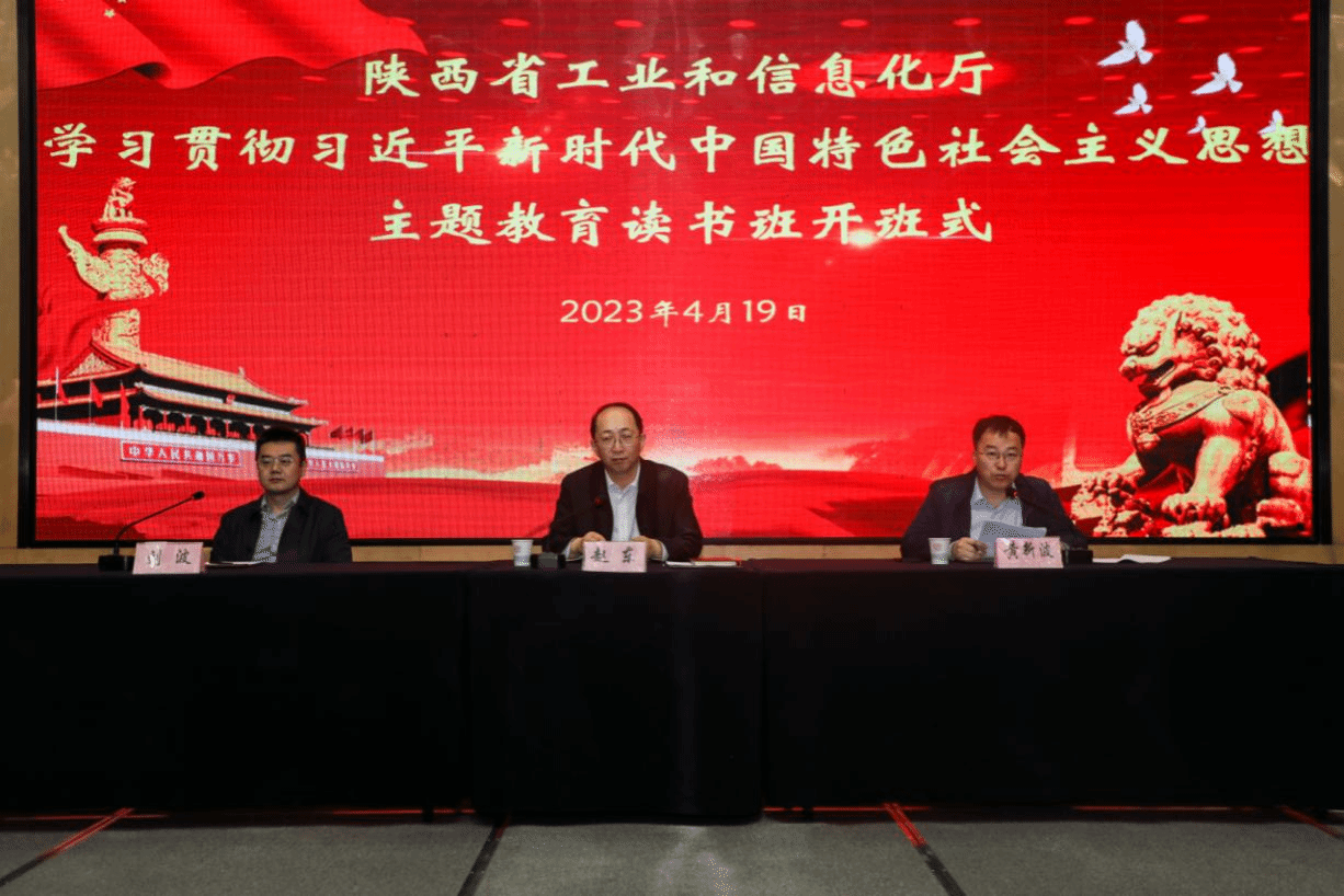 4月19日上午,陕西省工业和信息化厅学习贯彻习近平新时代中国特色社会主义思想主题教育读书班开班。读书班深入学习贯彻习近平总书记在主题教育工作会议上的重要讲话精神,全面系统学习习近平新时代中国特色社会主义思想,牢牢把握“学思想、强党性、重实践、建新功”的总要求,着力推动主题教育高标准开局、高质量开展,努力在以学铸魂、以学增智、以学正风、以学促干方面取得实实在在的成效。受厅党组书记、厅长陈忠委托,厅党组成员、副厅长、一级巡视员赵东动员讲话,厅党组成员、副厅长黄新波主持开班式,厅党组成员、副厅长刘波出席。
