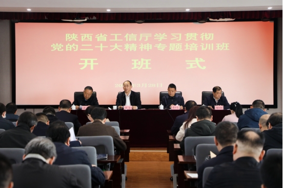 为深入学习贯彻党的二十大精神,推动厅系统学习贯彻工作走深走实,3月28日到4月7日,陕西省工业和信息化厅在省委党校(行政学院)举办学习贯彻党的二十大精神专题培训班,分4期对厅机关全体党员、干部,厅属企事业单位领导班子成员和派出机构领导干部进行集中培训。陕西省工业和信息化厅党组成员、副厅长、直属机关党委书记赵东、省委党校(行政学院)副校长(院长)薛小毛参加开班式并分别讲话。