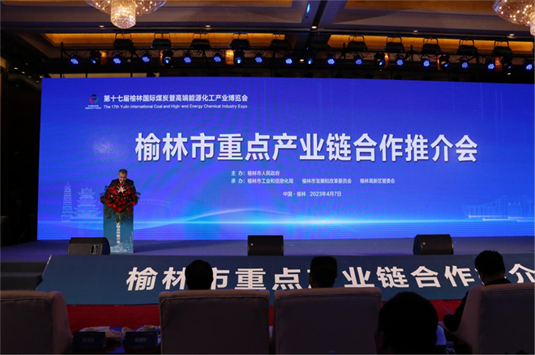 4月7日,在榆林国际煤博会举办期间,由榆林市政府牵头,榆林市工信局、榆林市发改委、榆林高新区联合重点产业链中14家链主企业、领航企业,举办了重点产业链合作推介会。陕西省工信厅副厅长黄新波,榆林市委常委、统战部部长王华胜出席会议并分别致辞,榆林市人大常委会副主任贺文元、市政协副主席惠德存参加会议,榆林市工信局局长高志钧主持会议。
