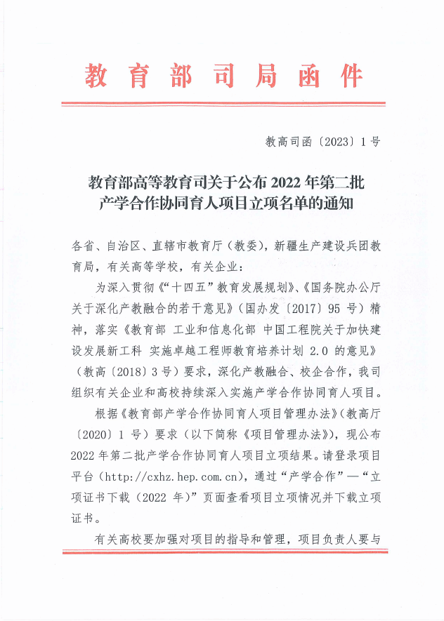 附:2022年教育部产学合作协同育人项目立项名单(陕西西工大科技园有限公司)