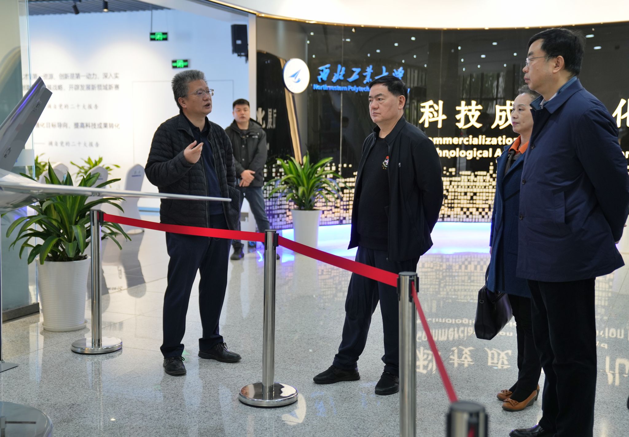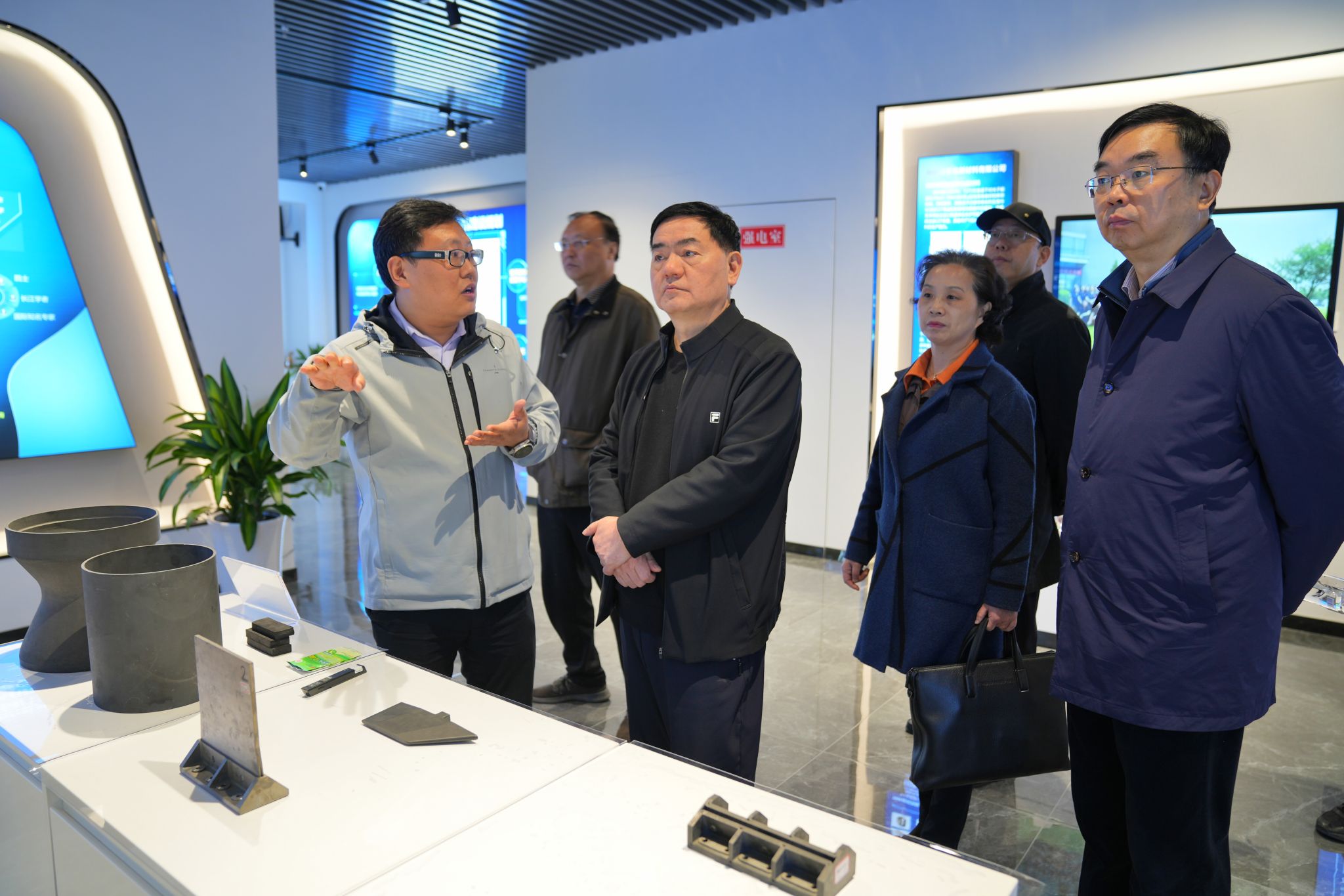 李和平一行参观了学校科技成果转化展厅,详细了解学校科技成果转化企业发展情况,并对学校科技成果转化应用、科技协同等方面的做法和经验进行了考察。