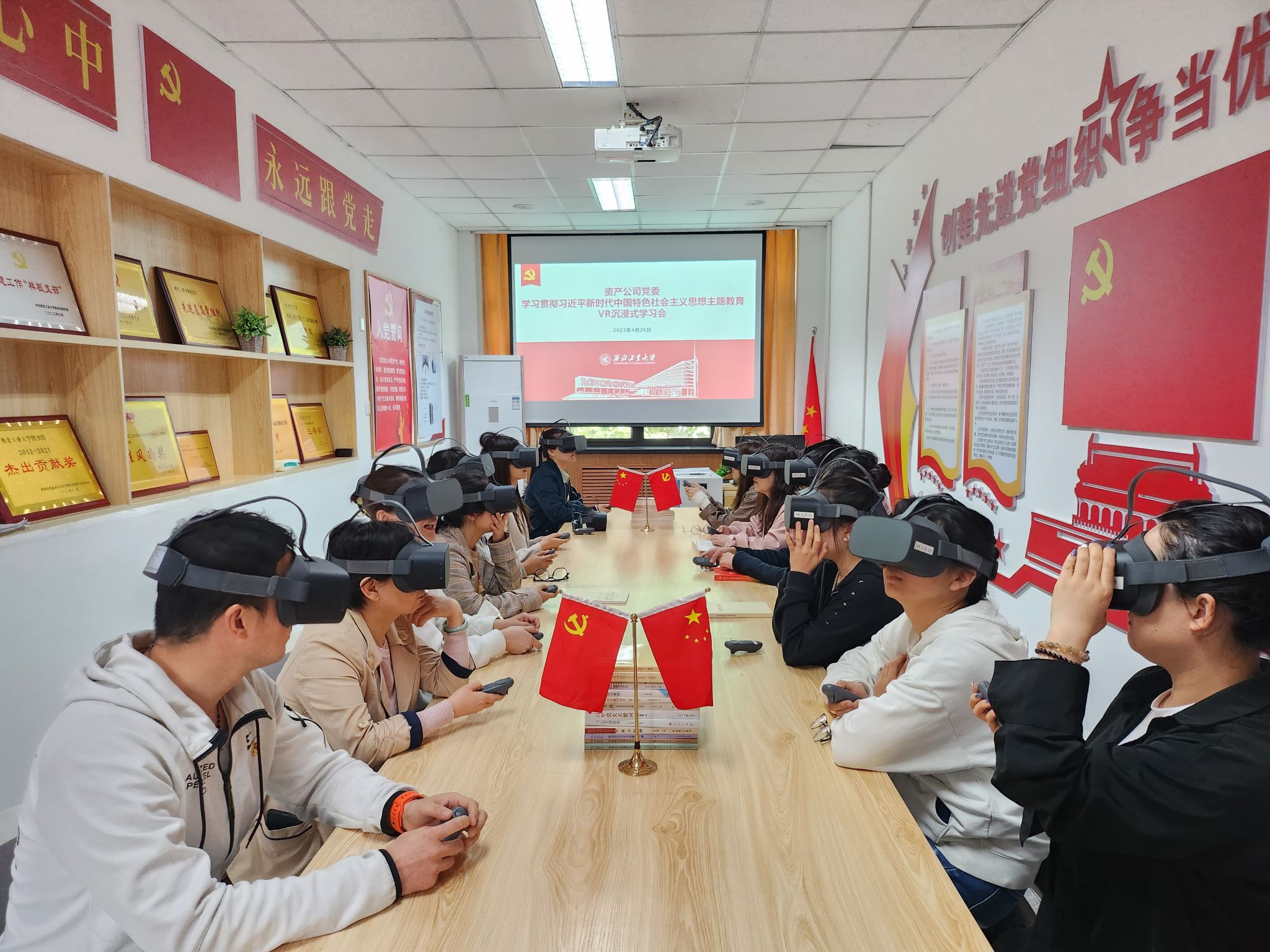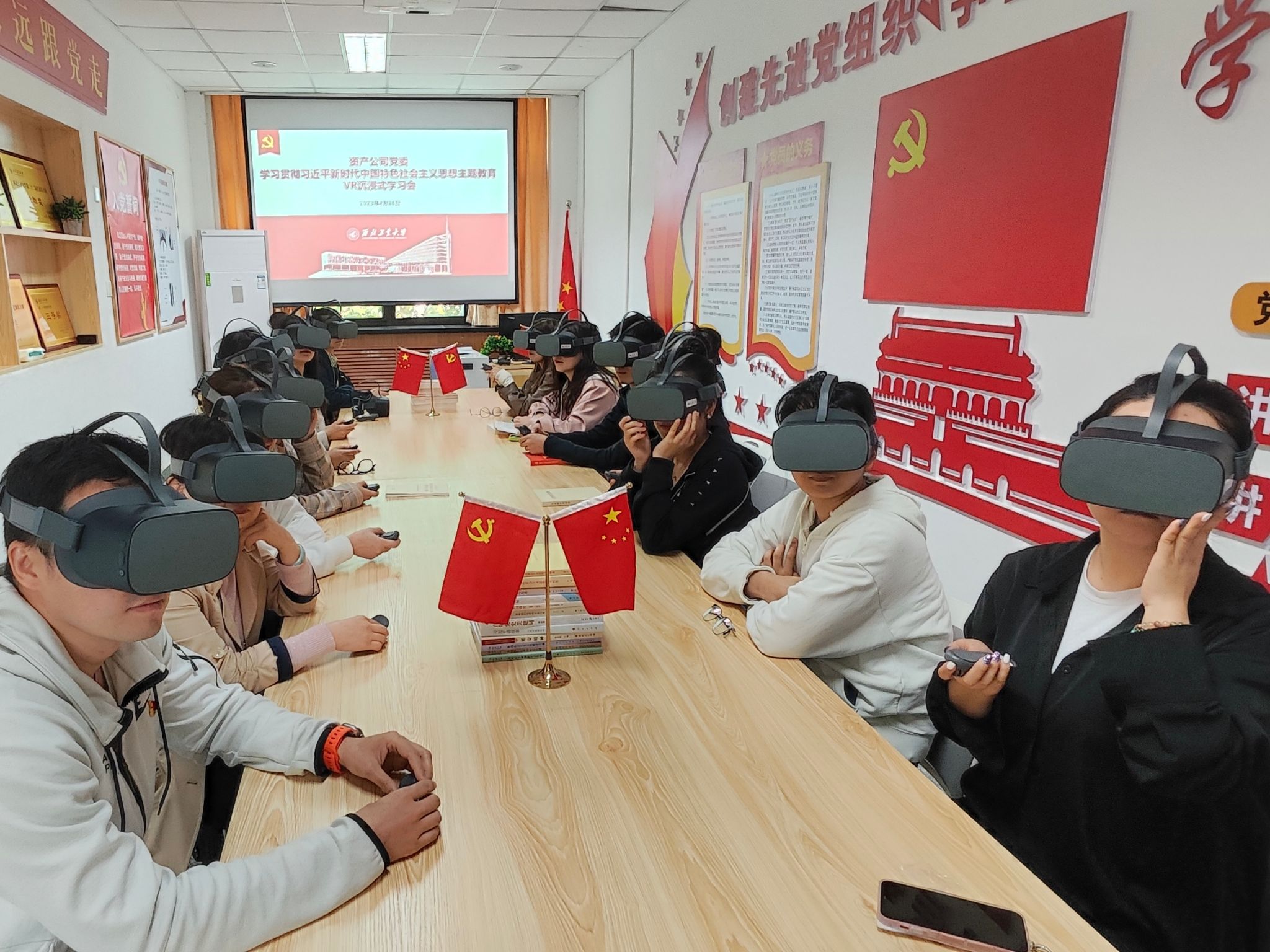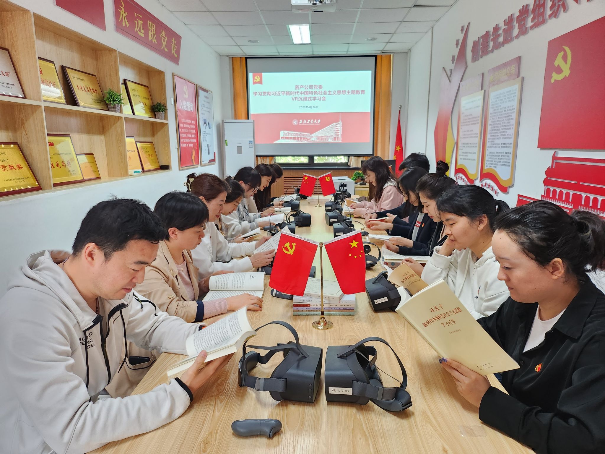 为深入开展学习贯彻习近平新时代中国特色社会主义思想主题教育,扎实推进主题教育工作。4月26日上午,资产公司党委组织党员及青年理论学习组共15人赴学校党建VR活动室开展学习贯彻习近平新时代中国特色社会主义思想主题教育VR沉浸式学习会。