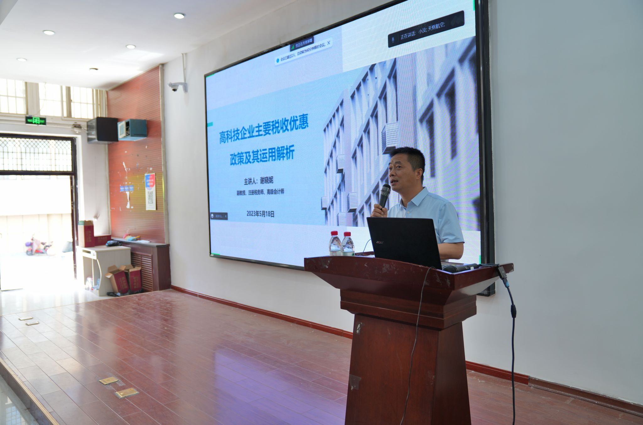 本次培训邀请到西安欧亚学院会计学院会计系主任、高级会计师谢晓妮授课。谢主任通过剖析高科技企业认定条件要点、解读主要税收优惠政策及其运用过程中的财税细节,帮助参会人员梳理了优惠政策适用要点和风险防范主要方向。