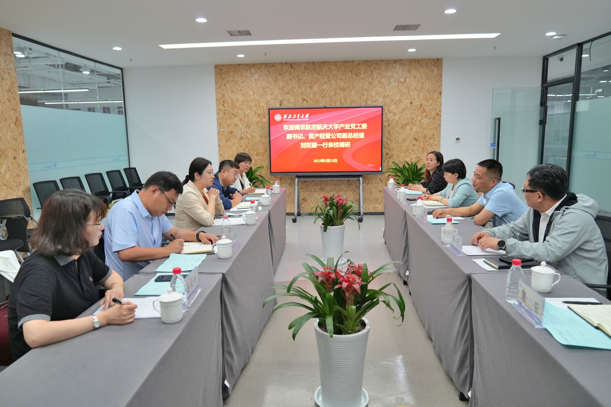 5月23日,南京航空航天大学产业党工委副书记、资产经营公司副总经理刘双丽一行5人就科技成果转化、所属企业投后管理等方面工作来校调研。资产公司党委副书记田建昌、副总经理齐天以及资产公司相关部门负责人参加座谈会。会议由田建昌主持。