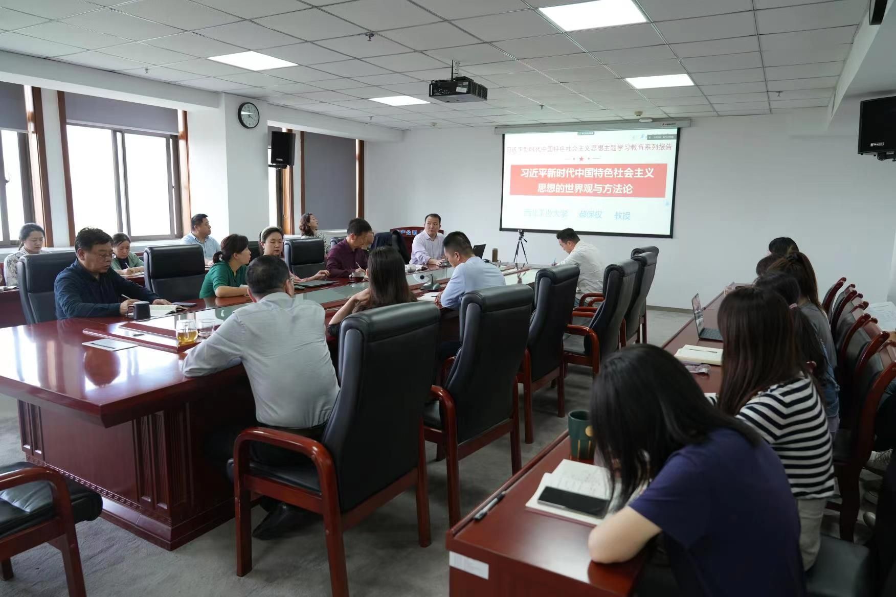 为深刻理解习近平新时代中国特色社会主义思想的世界观与方法论,进一步加强理论研究工作,提升调查研究水平,将开展主题教育和推动工作相结合,真正做到以学铸魂、以学增智、以学正风、以学促干,5月30日下午,资产公司党委联合无人系统技术研究院党总支特邀请学校马克思主义学院博士生导师、中央马克思主义理论研究与建设工程专家、教育部思政创新研究中心办副主任、陕西省政党治理与意识形态安全研究基地主任郝保权教授为大家做“解读习近平新时代中国特色社会主义思想的世界观与方法论”的专题辅导报告。报告会采用线上、线下同步进行,资产公司、科技园、异地创新机构、无人系统技术研究院全体党员及教职工参加培训,本次报告会由资产公司党委副书记田建昌主持。