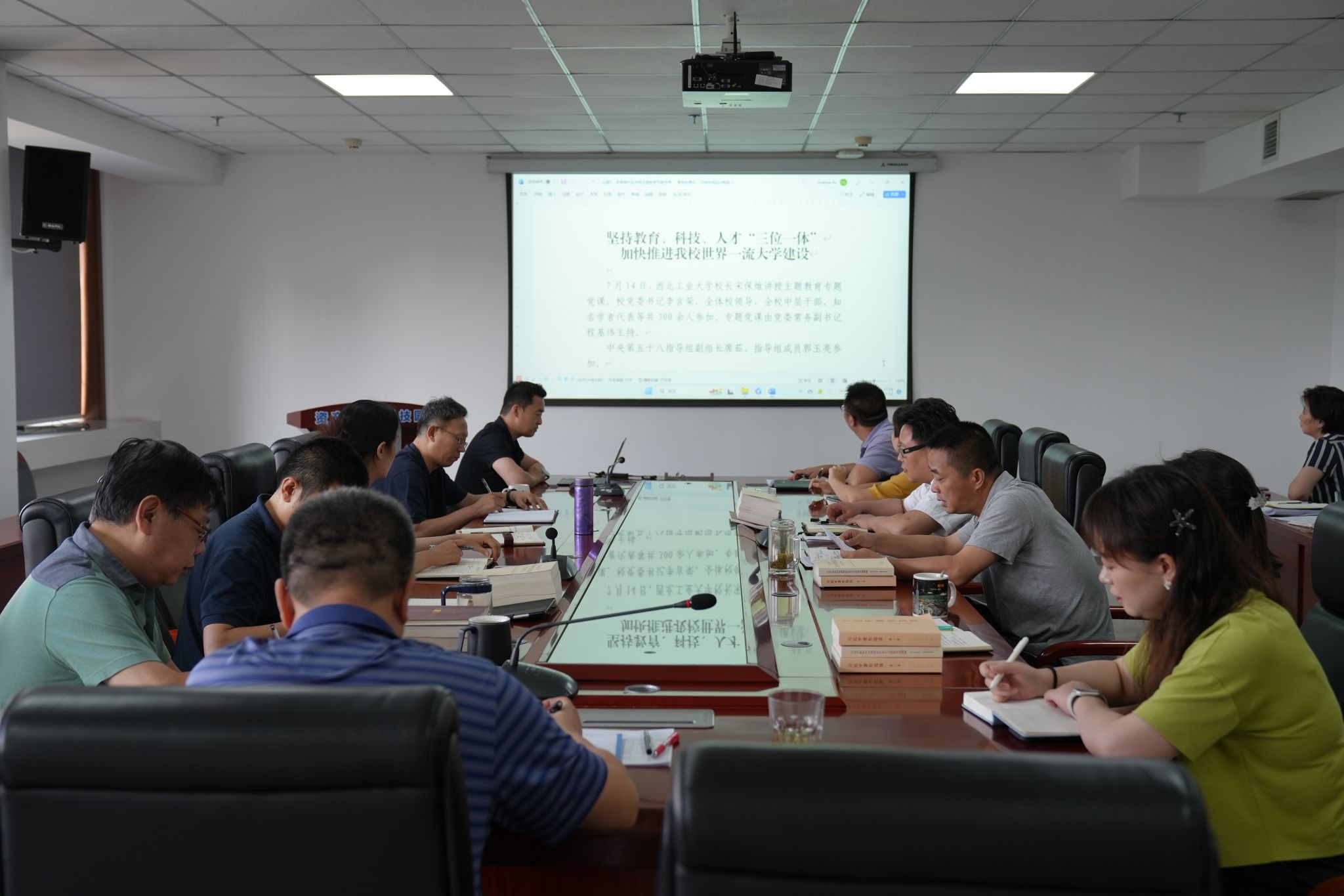 7月19日下午,资产公司召开党委理论学习中心组学习会议、党政联席会议,传达学习宋保维校长主题教育专题党课精神。资产公司党委委员,资产公司、国家大学科技园中层以上干部参加会议,会议由资产公司党委副书记田建昌主持。